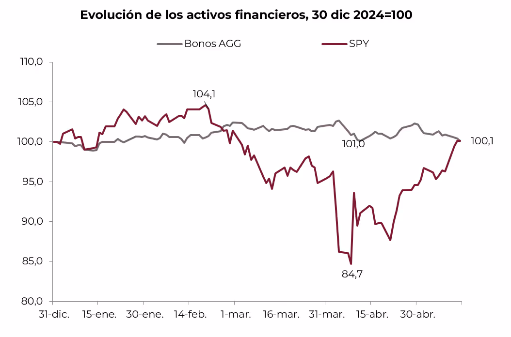 Del “liberation day” a la pausa por 90 días; de las amenazas de romper relaciones comerciales a la negociación; del pánico con derrumbe de precios al alivio con fuerte recuperación; y de la recesión inexorable a la expectativa de un soft-landing. Así es el ritmo que le impone Trump a la coyuntura económica y financiera global, en la que la única certeza es la volatilidad. El statu quo que imperaba hasta 2024 ya no será el mismo, con un comercio global más tensionado. De hecho, a pesar de la pausa, el arancel promedio de EE. UU. seguirá siendo el más alto de los últimos 100 años, lo que sin dudas tendrá efectos sobre la dinámica macroeconómica: un piso de inflación más alto, menor dinamismo del consumo y una Fed que mantendría la disciplina monetaria. El renovado optimismo del mercado se reforzó con datos económicos mejores a lo esperado, con buen desempeño del mercado laboral y una inflación que, por el momento, no reflejó el impacto del aumento de aranceles. Esto generó volatilidad en los rendimientos de los bonos del Tesoro que, tras una caída inicial, repuntaron y volvieron a los niveles más altos del año. Mientras tanto, el mercado accionario tuvo un muy buen mes, con rápida recuperación desde el mínimo registrado tras el anuncio de las medidas, en tanto que la renta fija mostró un comportamiento dispar, con caída en los bonos del Tesoro y repunte de los corporativos. Por otro lado, el dólar se debilitó –aunque habría tocado un piso–, mientras que los commodities recuperaron parte del terreno perdido.