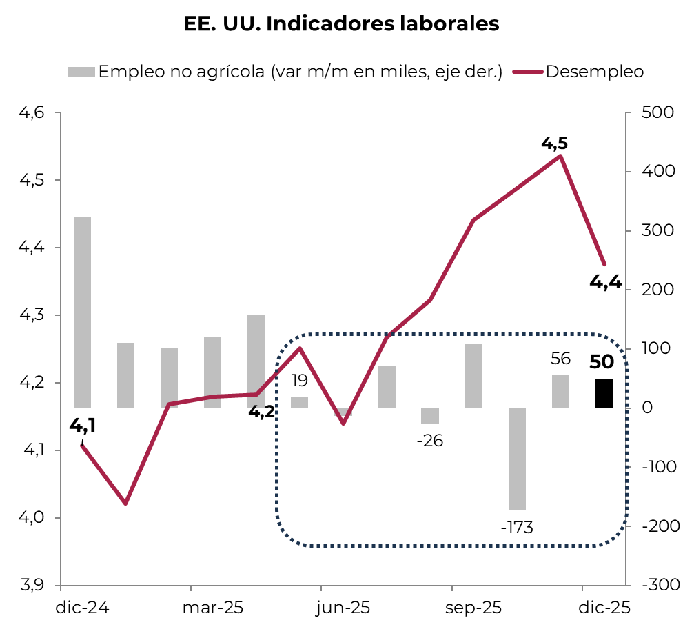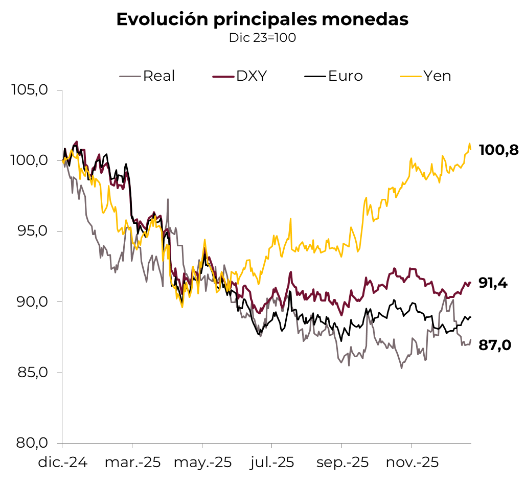 Desde que ganó las elecciones en 2024, Trump se convirtió en un factor de volatilidad para el mercado. Primero, por su agresiva política de suba de aranceles; luego, por sus intervenciones en el mapa geopolítico global, pasando por la embestida contra la Fed a raíz de lo que considera una política monetaria que demora demasiado en bajar la tasa de interés. En el primer año de gestión, todas estas cuestiones generaron incertidumbre y sorpresa entre los inversores, pero no cambiaron el rumbo ni de la economía ni de los mercados. De hecho, la economía siguió creciendo en 2025, con la inflación en baja y el desempleo estable, superando las expectativas y aplacando los temores de estanflación que se generaron en la primera mitad de 2025 debido al impacto del inédito aumento de los aranceles a las importaciones. Detrás de este resultado se encuentra la fortaleza del consumo y de la inversión privada, donde se destaca el fuerte dinamismo de la inversión en IA por parte de las empresas. En el plano fiscal, la suba de aranceles permitió un mejor desempeño de los ingresos que, acompañado por cierta moderación del gasto, derivó en una leve mejora del resultado fiscal, aunque el déficit y la deuda pública siguen en niveles muy elevados, lo que presiona sobre los rendimientos de los bonos del Tesoro, especialmente en el tramo largo. En este contexto, la Fed siguió flexibilizando la política monetaria, con tres recortes de la tasa de interés y la promesa de comenzar a expandir su balance para darle más liquidez al mercado. Las perspectivas para este año es que este proceso continúe, con algo más de crecimiento, desocupación estable y la inflación convergiendo al objetivo de la Fed.