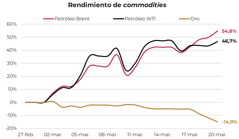 Si el conflicto se prolonga, veremos un escenario de dólar fuerte, tasas de interés en alza y mercados accionarios en corrección. El principal temor del mercado es la estanflación, es decir, la combinación de una economía global estancada con tasas altas producto de una inflación persistente.