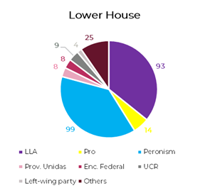 This new political balance will not only enhance the Executive’s governability —with its own veto power and greater negotiating leverage— but also bring it closer to the majorities required to push forward key structural reforms. Specifically, the administration will hold 93 seats in the Lower House (107 including allies) and 20 seats in the Upper House (26 with allies).